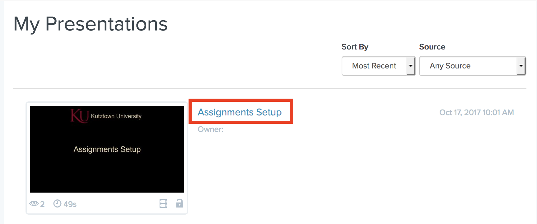 Navigate to My Mediasite. Select the presentation that you want to share from your video repository.