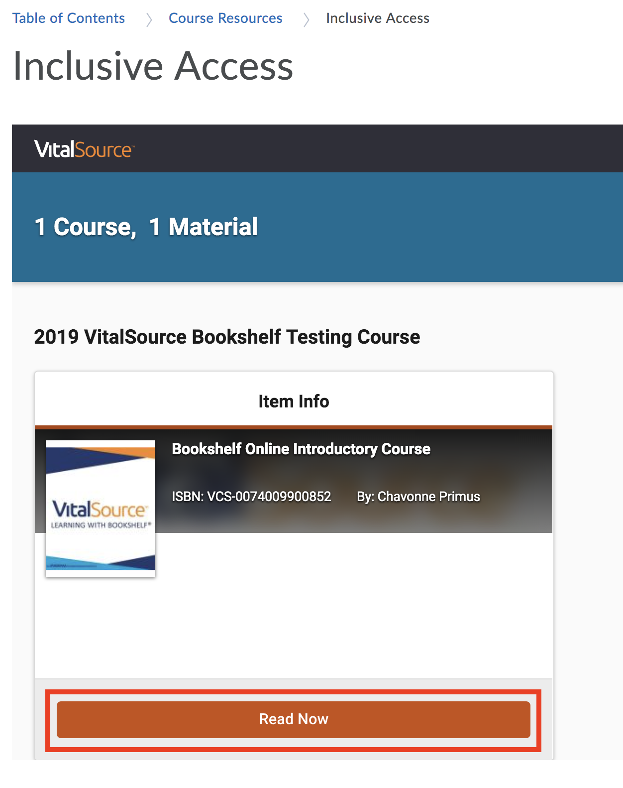 Your available course materials will appear in the window. Click “Read Now” to open the material.